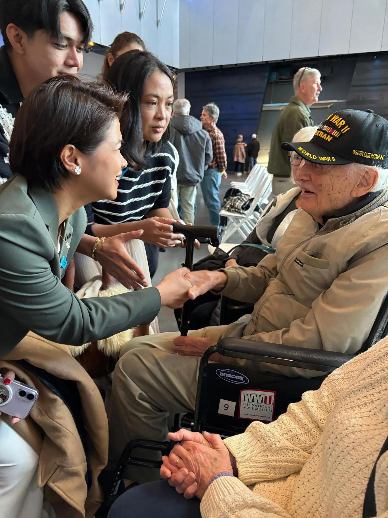A highlight of the exchange took place at the National WWII Museum and the Sanderson Leadership Center, where participants met World War II veterans and thanked them for their service, including Ogden Saik, Sam Meyer, and Kenneth Karl Schubring Sr.